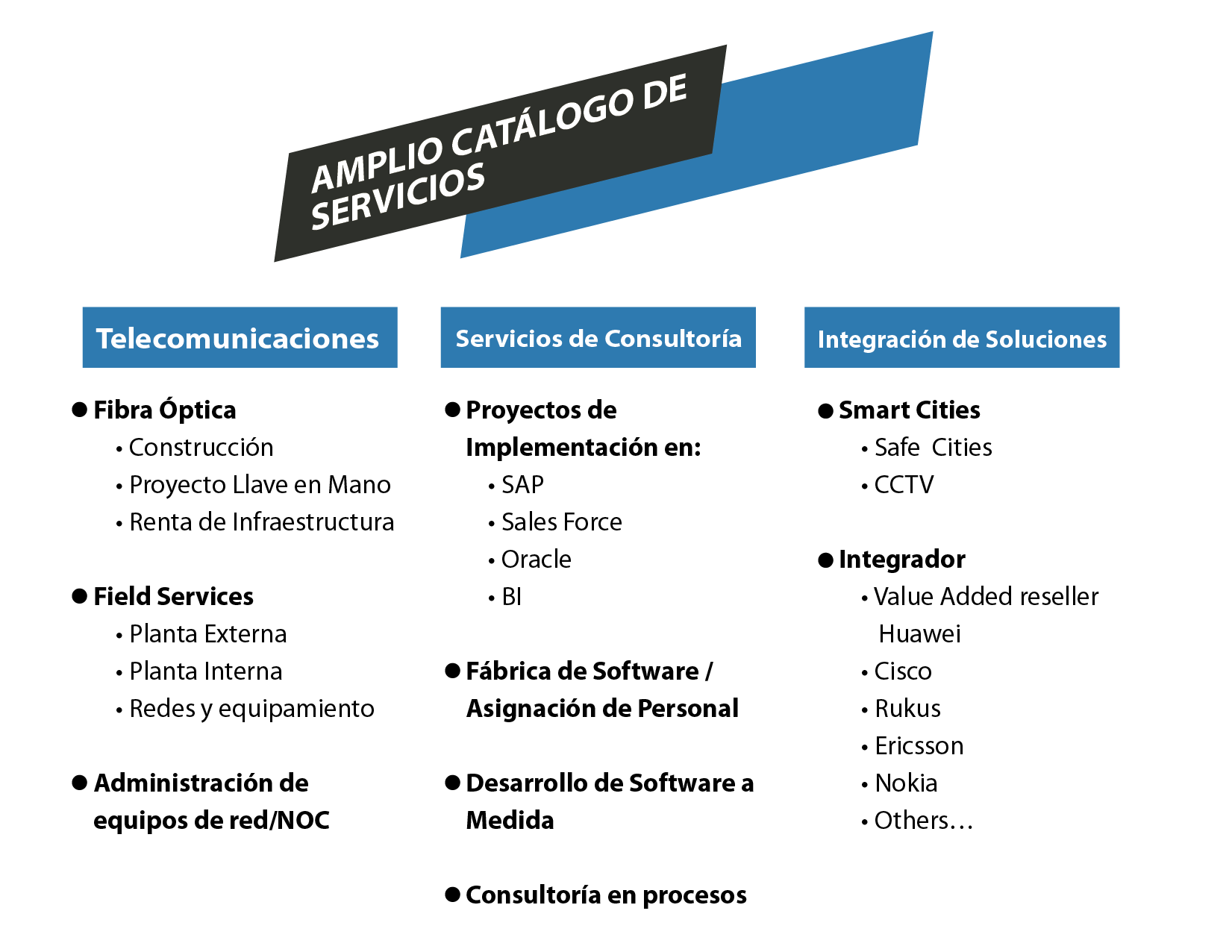 Adicional a las Soluciones de Mercadotencia y Publicidad, ADN ofrece con un servicio de asesoría para la integración de nuevas tecnologías con de empresas partner.